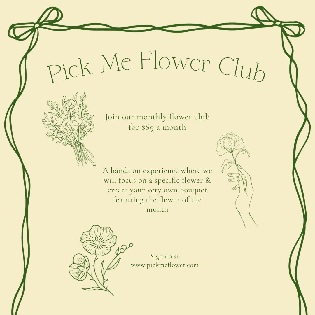 A monthly flower club where we gather to explore one featured bloom at a time - learning its story, seasonality, and design potential. Each meeting includes hands-on floral design as we create a bouquet highlighting that month's flower. It's part learning, part creativity, and all about celebrating flowers together. $69 per month and we will meet on the third Thursday of each month from 5:30-7pm.